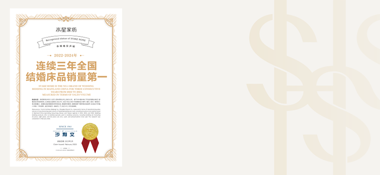 :弗若斯特沙利文(北京)咨询有限公司上海分公司,基于对中海内地(不包括港澳台地区完婚床品市场的研究,,,以各自力身牌在 2022 年、2023 年及 2024 年完婚床品(套件、被芯、枕芯/靠枕芯)的总销量计,完婚床品是指婚庆系列的床品,,,即通常在婚庆、完婚场景下使用的床品套件(也包括六件套、八件套、十件套等),,,被芯和枕芯/靠枕芯。。。。。。于 2025 年2月完成调研。。。。。。