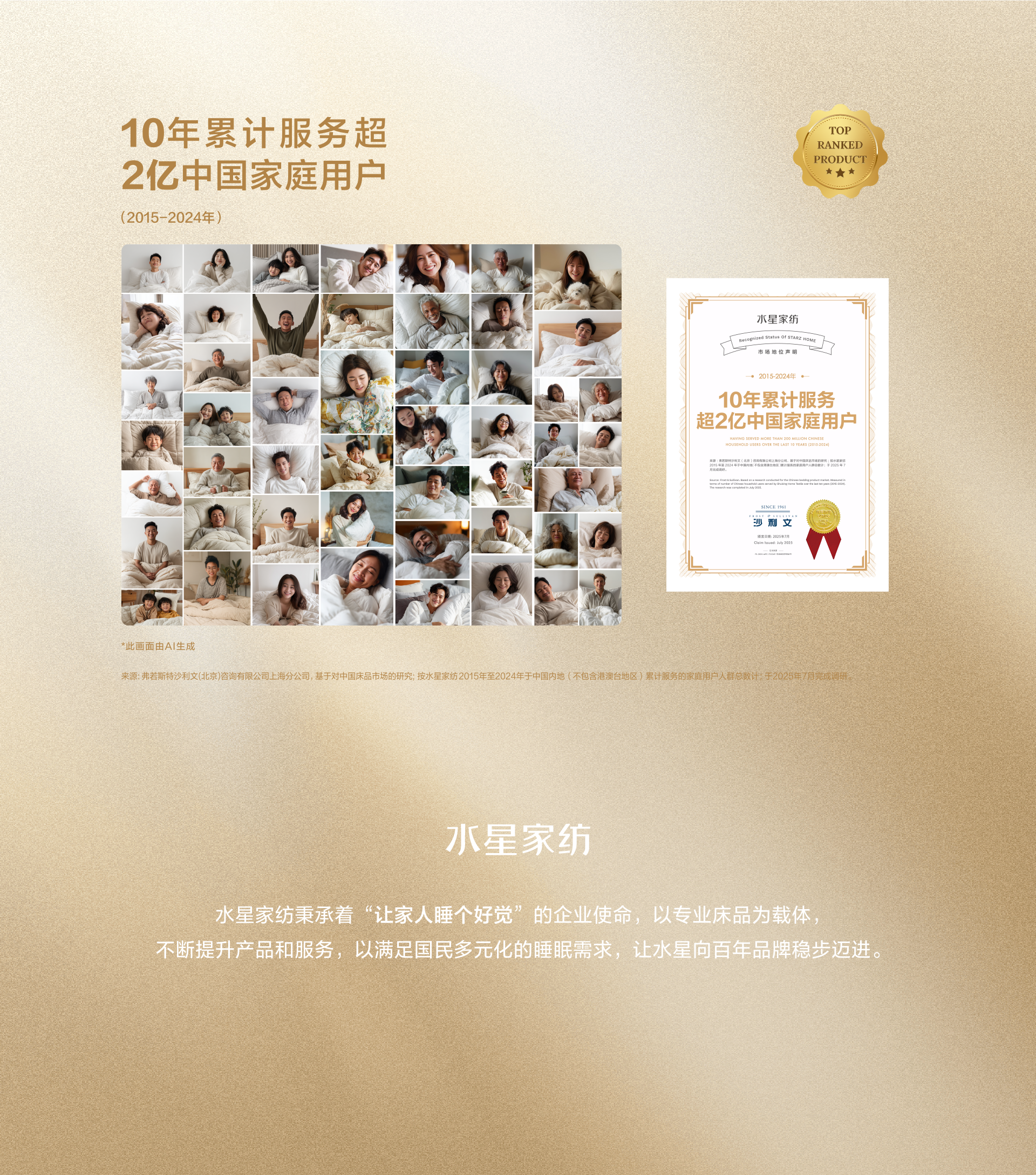 :弗若斯特沙利文(北京)咨询有限公司上海分公司,,,基于对中海内地(不包括港澳台地区)康健睡眠床品市场的研究,以各自力身牌在 2022 年,2023 年及 2024 年康健睡眠床品(套件、被芯、枕芯)的总销量计;康健睡眠床品指通过手艺或工艺,,,旨在实现抗菌除螨、吸汗排湿、散香舒缓、柔顺亲肤等功效,从而提高用户睡眠质量和睡眠体验、知足用户康健需求的床品。。。。。。于2025年2月完成调研。。。。。。